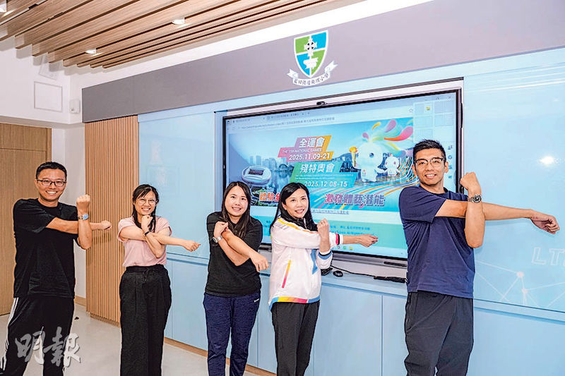【明報專訊】第十五屆全國運動會昨日開幕,藍田循道衛理小學上月起已舉辦多項跨學科活動,包括利用人工智能(AI)製作音樂,配以簡單動作編成「活力操」,讓全校師生一同伸展筋骨,率先「熱身」迎接全運會。
